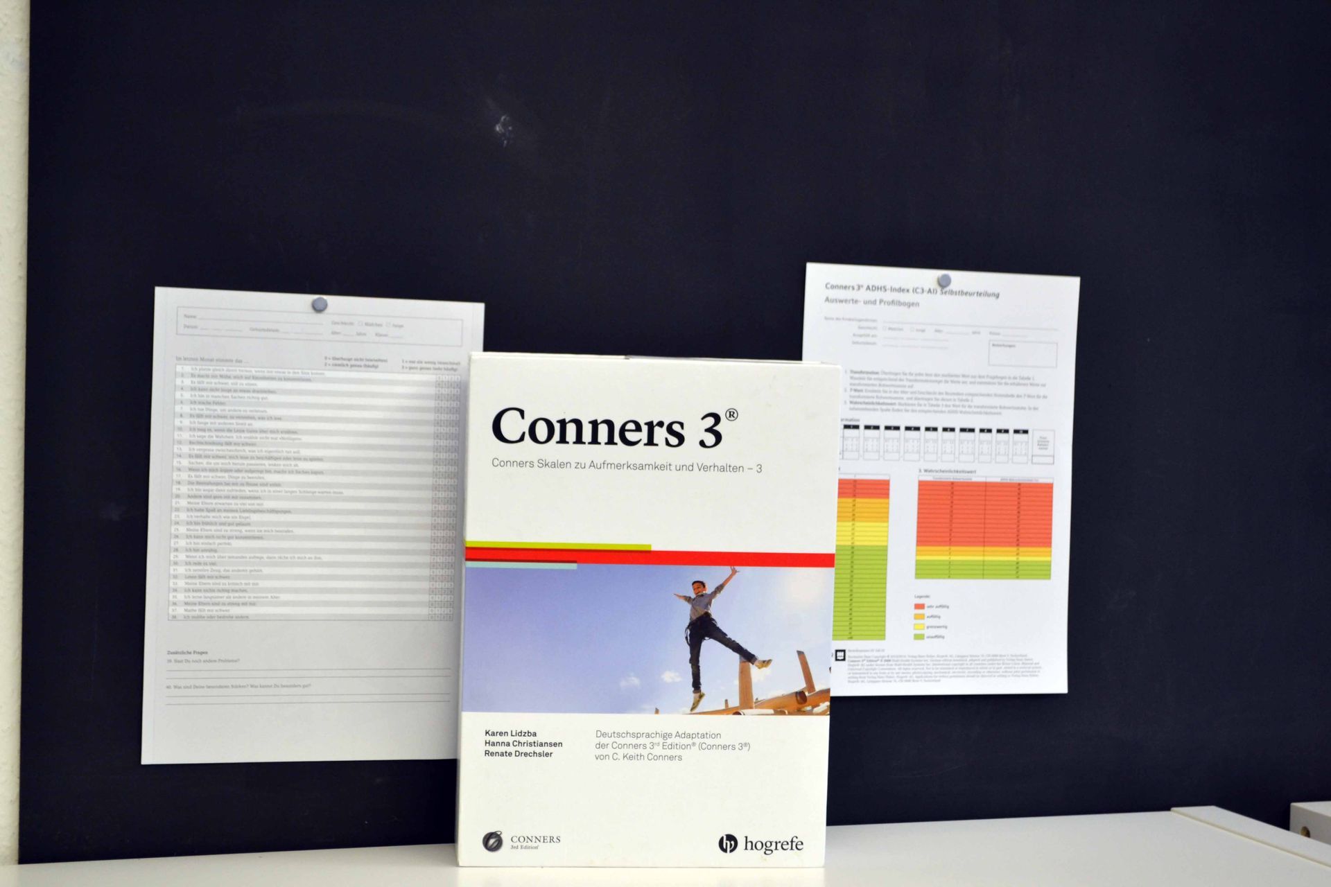 Die Conners 3® sind ein klinisches Fragebogenverfahren zur Erfassung von Aufmerksamkeitsstörungen. Die Inhaltsskalen geben einen Überblick über das Verhalten des Kindes oder Jugendlichen hinsichtlich der ADHS-Kernsymptome und Probleme, die im Zusammenhang damit auftreten (aggressives Verhalten, Sozialverhalten, exekutive Funktionen, Lernprobleme). Die DSM-IV-TR- bzw. DSM-5- und ICD-10-Symptomskalen umfassen die Diagnosekriterien der ADHS, der hyperkinetischen Störungen, der Störung mit oppositionellem Trotzverhalten und der Störung des Sozialverhaltens. Sowohl die Anzahl der jeweils zutreffenden Diagnosekriterien (kategoriale Beurteilung; Symptomzahl) als auch ein Standardwert (dimensionale Beurteilung; Skalenwert) können berechnet werden. Die Validitätsskalen erlauben eine Überprüfung der Antwortmuster hinsichtlich Inkonsistenz und Verzerrungstendenzen. Zusätzlich sind Screening-Items zu Depressivität und Ängstlichkeit, kritische Items zu Aggressivität und Sozialverhalten, die einen dringenden Handlungsbedarf anzeigen, und Beeinträchtigungs- Items enthalten.