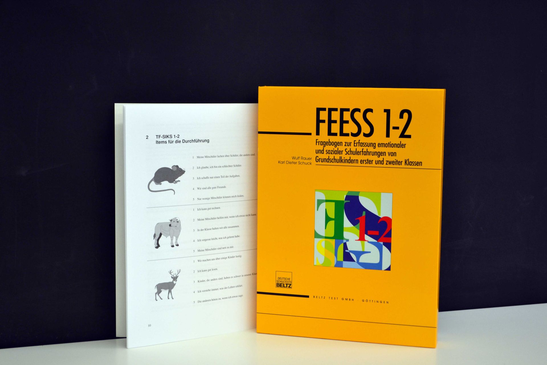Der FEESS 1-2 dient der Erfassung grundlegender emotionaler und sozialer Erfahrungen von Schulkindern der ersten beiden Klassen. Die 7 Skalen der beiden Teilfragebögen beziehen sich auf psychologische Konstrukte, die mit allgemeinen, nicht kognitiven Zielen der Grundschullehrpläne der Bundesländer korrespondieren. Mit dem ersten Teilfragebogen (SIKS) werden die folgenden Dimensionen des Sozialklimas und des Fähigkeits-Selbstkonzepts erfasst: Kompetenzzuschreibungen der Schülerinnen und Schüler (Selbstkonzept der Fähigkeit), die erlebte eigene soziale Integration in die Klasse (Soziale Integration) und die wahrgenommenen sozialen Beziehungen in der Klasse (Klassenklima). Mit dem zweiten Teilfragebogen (SALGA) werden verschiedene Aspekte des Schul- und Lern- klimas erhoben: Wohlbefinden in der Schule (Schuleinstellung), die Wahrnehmung der Gefühle beim Lernen (Lernfreude), die Bereitschaft sich schulisch Neuem und Anstrengendem zu öffnen (Anstrengungsbereitschaft) und die Wahrnehmung der Lehrerinnen und Lehrer (Gefühl des Angenommenseins). Die Fragebögen können mithilfe der Schablonen schnell ausgewertet werden. Es können Profile für einzelne Kinder und ganze Klassen (per Gruppentest) ermittelt werden.