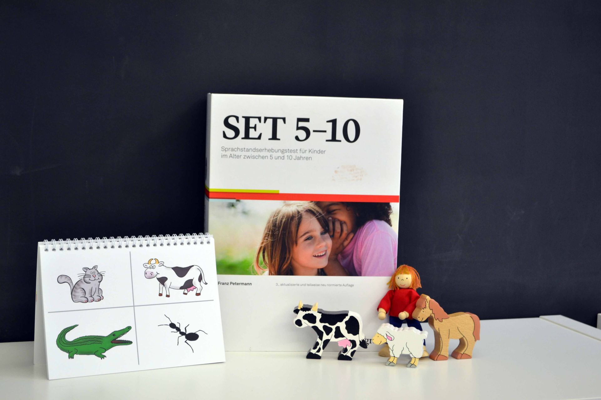 Der SET 3-5 ermöglicht eine an den Entwicklungsstand angepasste Beurteilung des Sprachstands für Vorschulkinder. Das Verfahren ist für Kinder im Alter von 3;0 bis 5;11 Jahren konzipiert. Der SET 3-5 stellt ein praxisrelevantes und ökonomisches Verfahren für Kinderpsychologen, Kinderärzte, Pädagogen, Erzieher und Sprachtherapeuten dar. Einzeltest. Der SET 3-5 ermöglicht eine an den Entwicklungsstand angepasste, umfassende Beurteilung des Sprachstands für Kinder im Vorschulalter. Neben den zentralen Sprachbereichen können mit dem SET 3-5 wichtige Vorläuferfertigkeiten des Spracherwerbs erfasst werden. Es liegen insgesamt zwölf Untertests vor, die die folgenden Bereiche überprüfen: Wortschatz, Phonetik/Phonologie, Semantische Relationen, Verarbeitungsgeschwindigkeit, Grammatik/Morphologie, auditive Merkfähigkeit sowie Emotionserkennung und Empathiefähigkeit. Zudem liegt eine Eltern-Checkliste zur Einschätzung der Pragmatik vor.